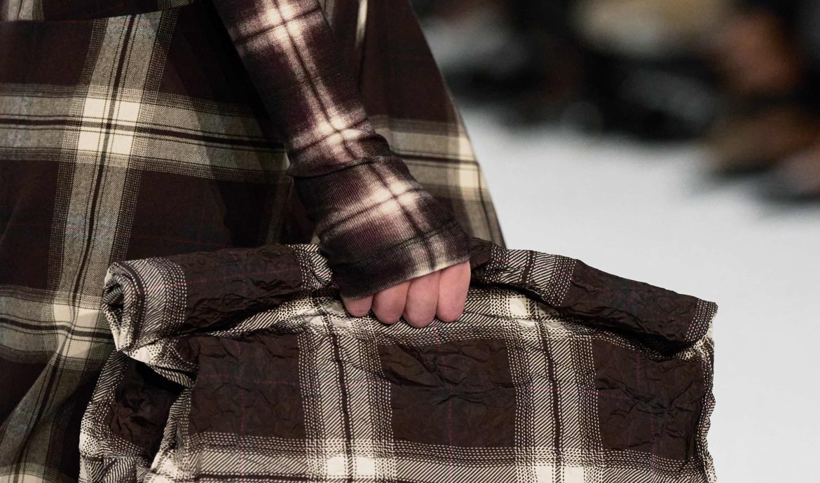 In contrast izbitor cu decorul, colectia se ancoreaza intr-o paleta sofisticata de nuante bogate, intense siintunecate – negru, gri metalizat si bleumarin inchis – completate de accente neutre. Expresia creativa se manifesta prin codurile iconice ale casei, redate prin materiale fine, texturi si finisaje: suprafetele cu efect de piele de ponei, pielea supla si blana de oaie sunt echilibrate de contrastul dintre mat si lucios, adaugandprofunzime vizuala. Pe podium, insertiile transparente au introdus momente de delicata transparenta, dezvaluindcorpul in miscare, in timp ce carourile dinamice, inspirate din traditie, au fost puse in evidenta pe piesele prêt-à-porter, accesorii si incaltaminte, formand tinute statement din cap pana in picioare.