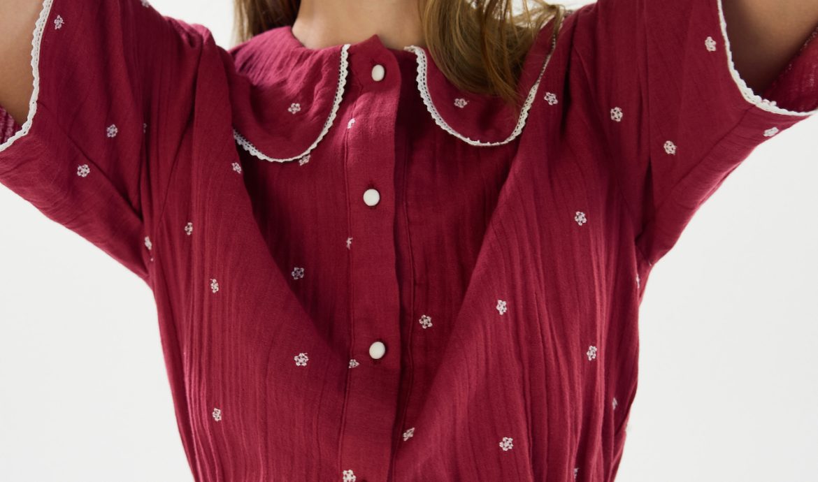 Colectia include jachete cu paspoal contrastant si gulere supradimensionate; un set din muselina, compus din bluza si pantaloni scurti ce pot fi purtate impreuna sau separat – intr-o nuantaburgundy cu imprimeu buline; o vesta matlasata cu detalii contrastante; o geanta tip messenger purtata crossbody si un breloc-pouch care poate fi atasat gentii sau purtat individual; un gulerdetasabil disponibil in doua variante, gandit pentru a fi integrat in stylinguri cu pulovere, hanorace sau tricouri; un sort si un scrunchie.