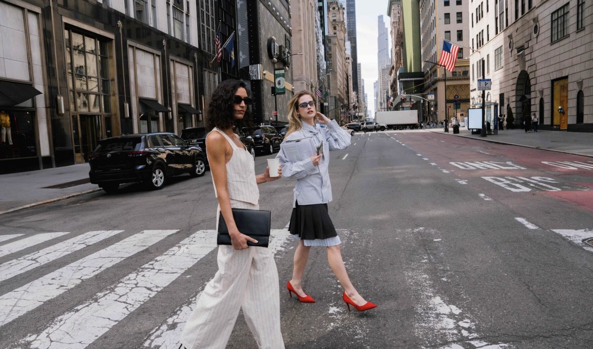 Colectia se bazeaza pe eleganta feminina, care se potriveste atat in codurile vestimentare de birou, cat si in tinutele de zi cu zi, urbane, dupa orele de program, si chiar si in tinutele mai elegante, de sarbatori. Paleta de culori include griuri deschise si reci, albe si bejuri, completate de accente indraznete de turcoaz si rosu. Aceste culori apar pe o rochie maxi cu imprimeu patchwork, o fusta rosie ampla (inspirata de look-ul lui Meryl Streep de la Met Gala, recreat intr-o versiune casual cu un top din satin, tot rosu) si pe esarfa care completeaza colectia.